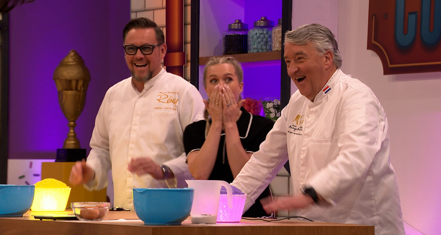 De bakduo’s worden verdeeld in team geel en team paars en mogen uit de startblokken met een bijzondere cupcake-beslag-estafette. Daarna moeten ze zichzelf vereeuwigen als robots met cupcakes als lichaam en cakepops als hoofd.