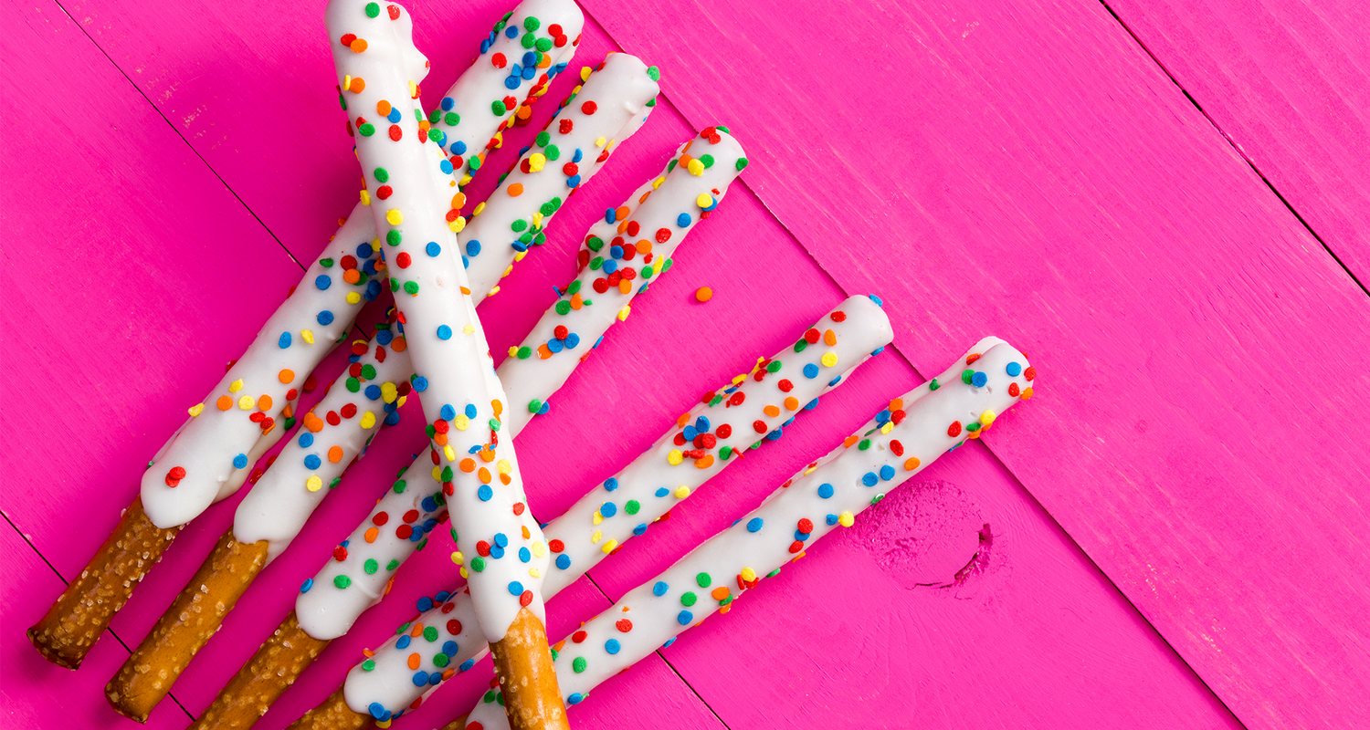 • Dikke pretzelsticks (zoute stokjes)