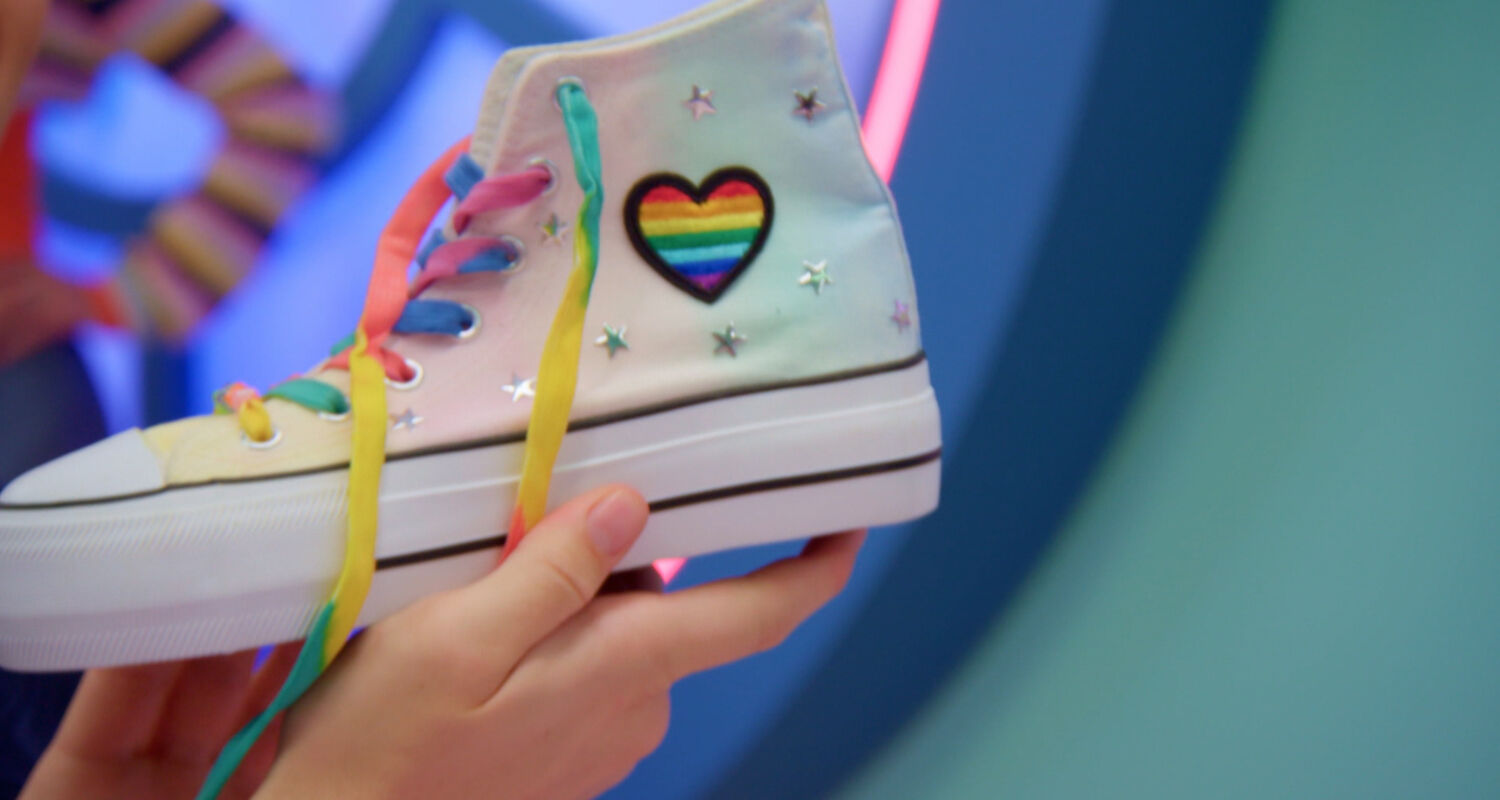 - 3. Om je sneakers extra te versieren, kun je nog sterretjes, regenboog-patches en schoenbedels op de schoenen plakken