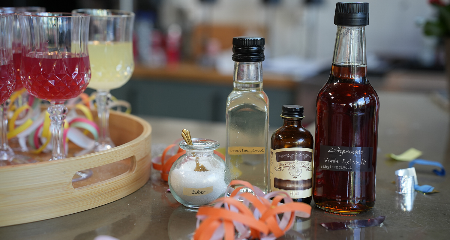 Ik kwam tussen de foto's van het feestje een foto tegen in de keuken waar Amber de drankje had klaargezet. Zien jullie iets raars? Iets dat ze misschien in het drankje kan hebben gedaan om hem te vergiftigen?