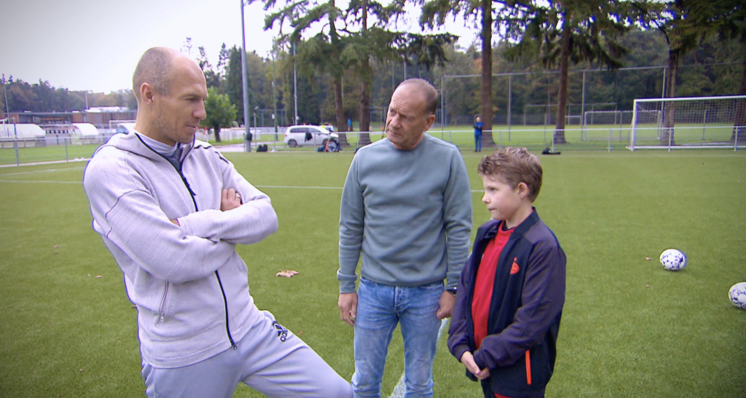 Tobias (12) leert dribbelen van voormalig profvoetballer Arjen Robben.